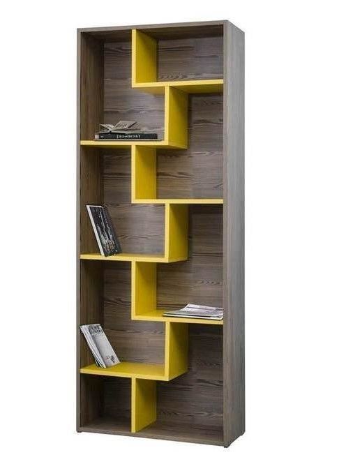 Стеллаж оснащен полками, визуально составляющими единую композицию. Такое решение поможет создать современный дизайн и хранить издания разных форматов. Мебель для современной библиотеки оснащается подпятниками, которые не царапают покрытие пола.