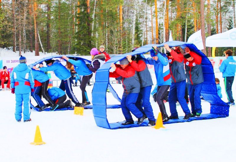 Лента для командной игры представлена эластичными прямоугольными фрагментами, которые соединяются в красочный элемент наподобие гармошки или гусеницы. Участники (по 3-4 человека) встают между стенками и пытаются коллективно сдвинуться  с места, не покидая обозначенных пределов. Для выполнения задания нужна скоординированная работа рук и ног всех игроков. Развлечение может превратиться в соревнования.