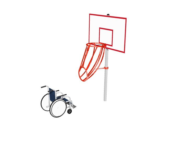 Стойка позволит играть в баскетбол людям, передвигающимся в инвалидных креслах. Отличается большим по сравнению с обычной стойкой диаметром кольца и желобом для целенаправленного выката мяча. Высота кольца регулируется при помощи креплений на хомутах.