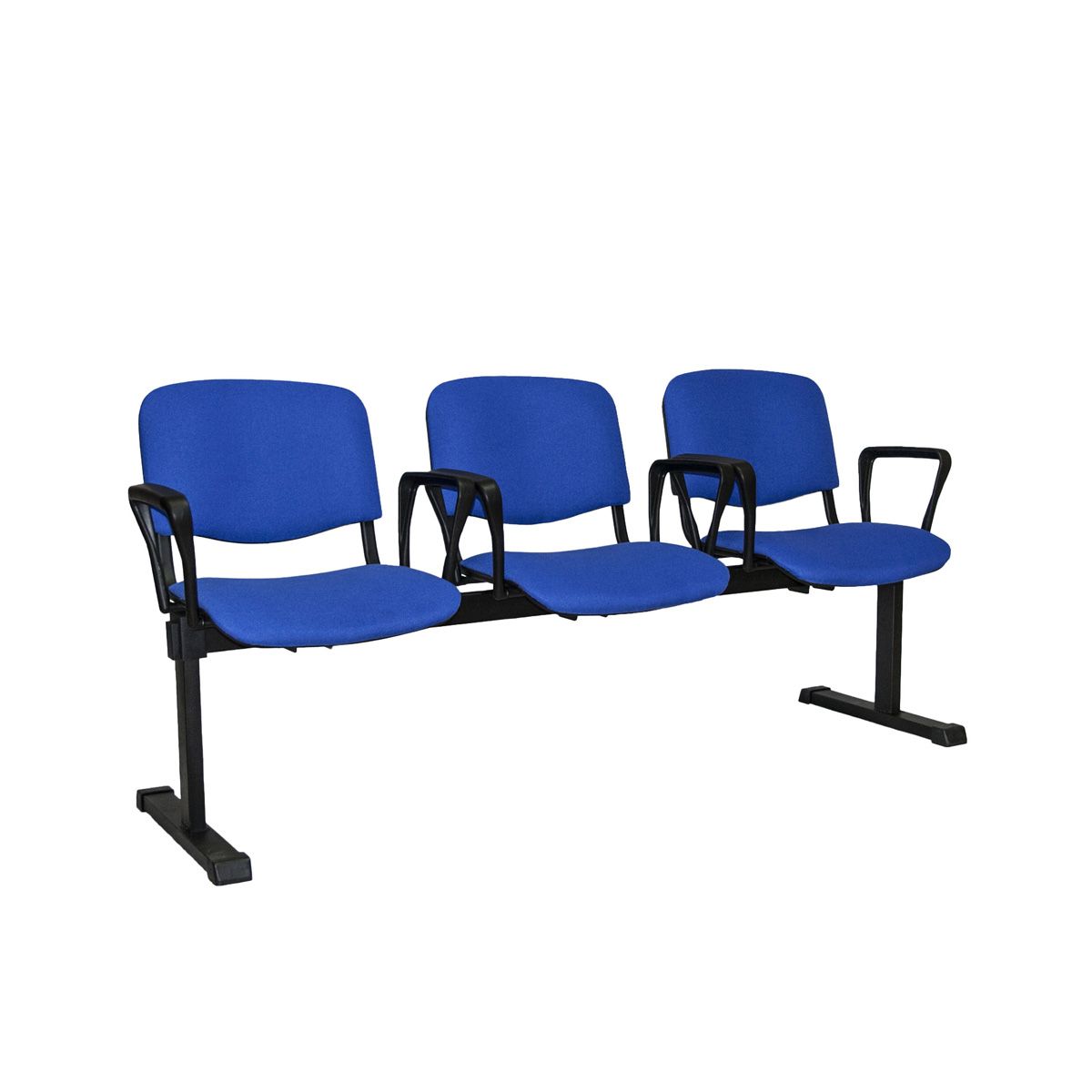 Блок состоит из трех стульев с мягкими спинками и сидениями, которые размещаются на сварных металлических каркасах с разборной рамой. Стулья оснащены подлокотниками. Сидения неоткидные.
