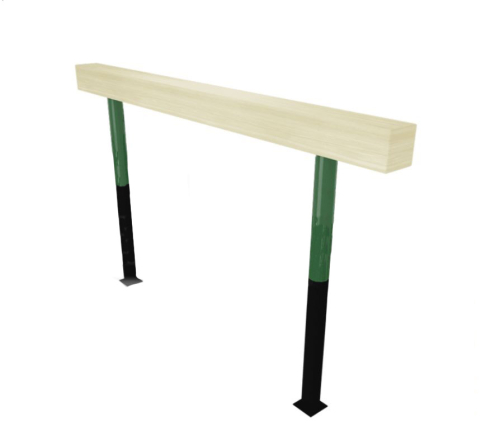 Ножки изделия выполнены из металлической трубы, покрытой полимерно-порошковой краской, что снижает возникновение коррозии, и придает изделию эстетичный вид. Бревно изготовлено из бруса хвойных пород покрытого специальной пропиткой, это сокращает риск травмирования детей, а так же воздействия влаги на древесное полотно.