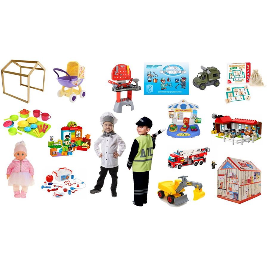 В комплекте: игрушки, игровые тематические наборы, костюмы (имитация формы), дидактические материалы.