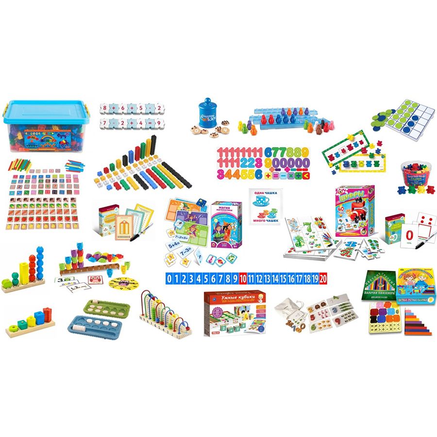 В комплекте: счетные наборы, пазлы, конструктор, наборы геометрических тел, карточки, игры, дидактические пособия.