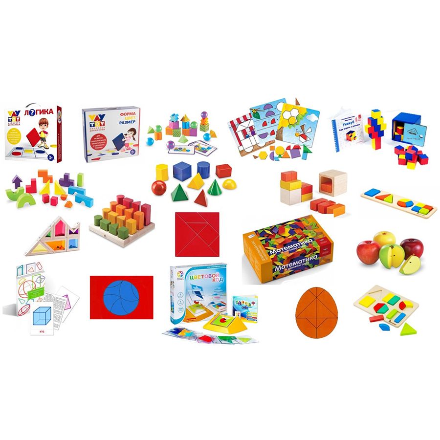 В комплекте: наборы геометрических тел, игры, дидактические материалы.