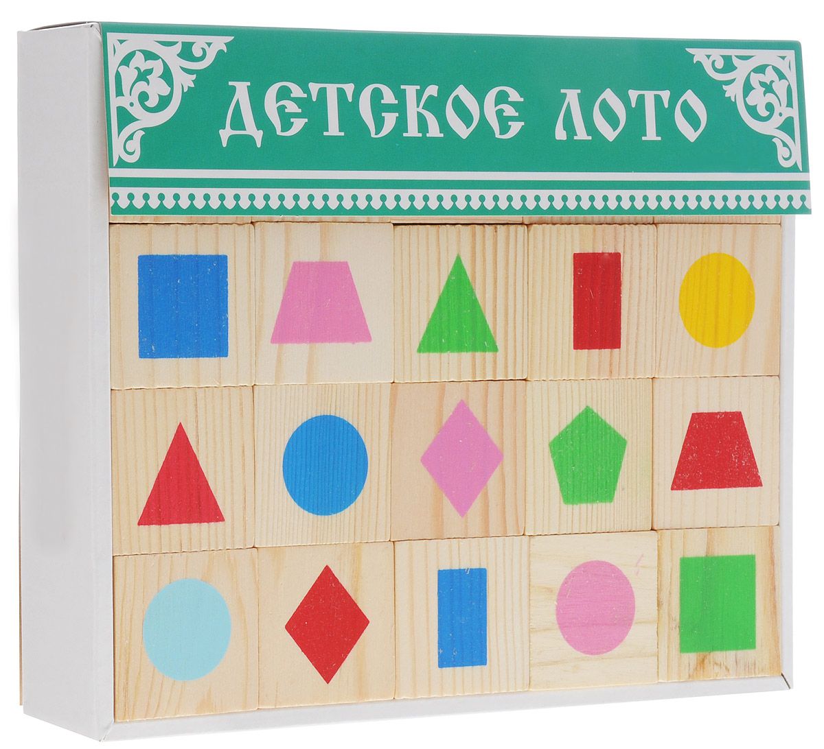 Детское лото выполнено из дерева и отшлифовано, естественный цвет материала сохранился. Прямоугольные карточки отличаются изображенными на них фигурами. Формы и расцветка фишек совпадает с картинками, необходимо выявить соответствие и составить пары элементов. Лото развивает логику и восприятие цвета, укрепляет память, совершенствует мелкую моторику.