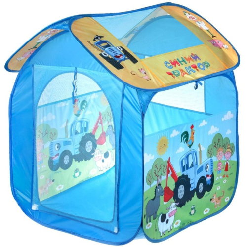 В разноцветной игровой палатке ребенок сможет уединиться, но при этом быть на виду. Предусмотрены прозрачные вставки по бокам и на крыше домика. Все углы изделия закруглены. Текстильная дверца, прикрывающая вход, скатывается в рулон, закрепляется веревками.