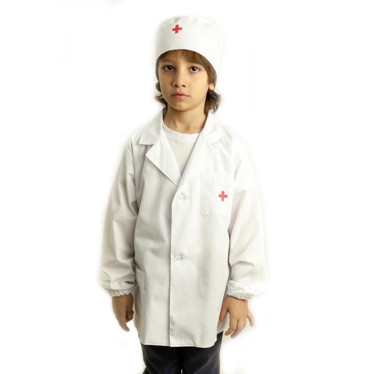 Состоит из халата с длинным рукавом и двумя карманами и шапочки на резинке. Халат застегивается на две пуговицы.