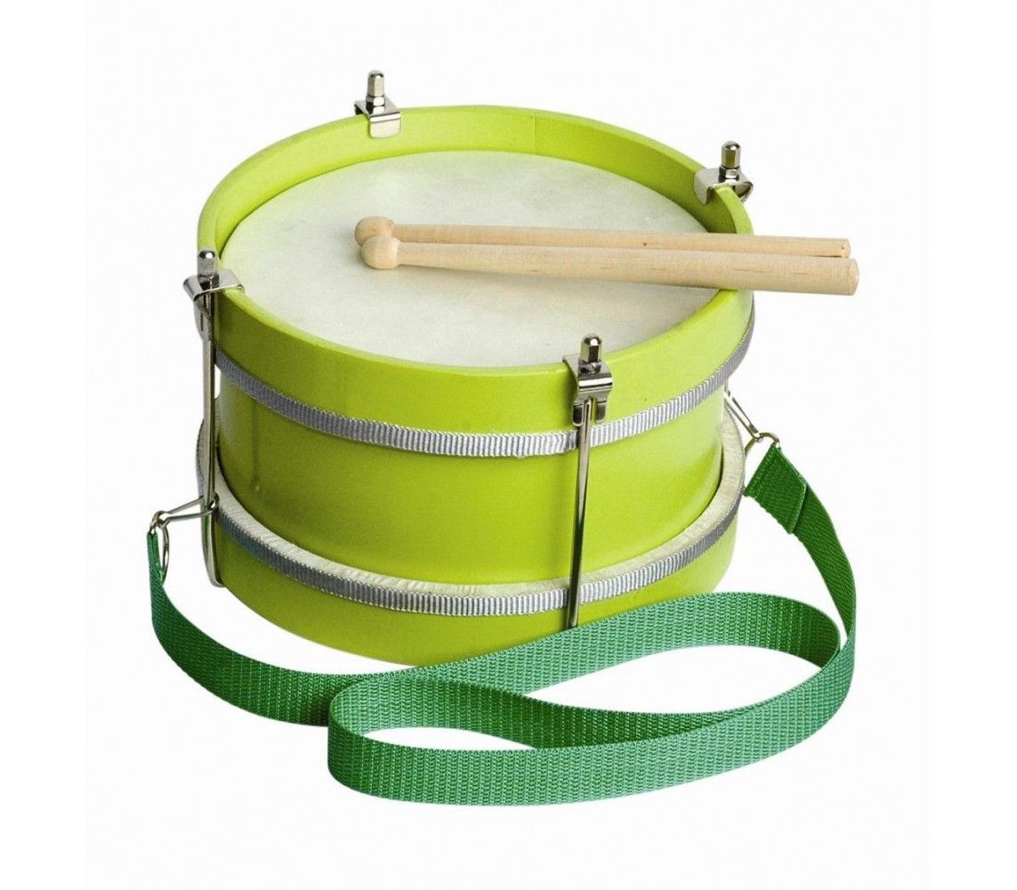 Инструмент используется для развития слуха, тактильных способностей и координации. Маршевый барабан с палочками оснащается мембраной из натуральной кожи.