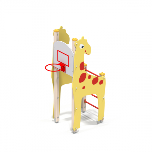 | В комплекте | шведская стенка (d перекладин 33 мм),, фанерный щит с разметкой и металлическим кольцом без сетки,, разновысокие столбы сечением 100х100 мм,, боковые панели в виде жирафа |