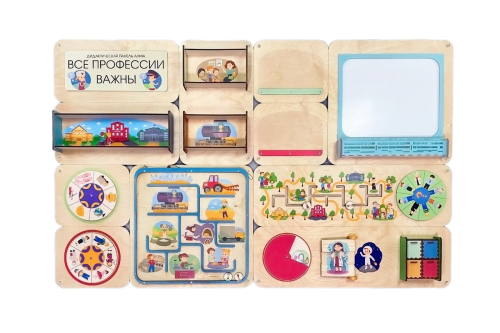Занятия с панелью формируют представления о профессиях, развивают логическое мышление, мелкую моторику, цветовосприятие, воспитывают уважение к труду.