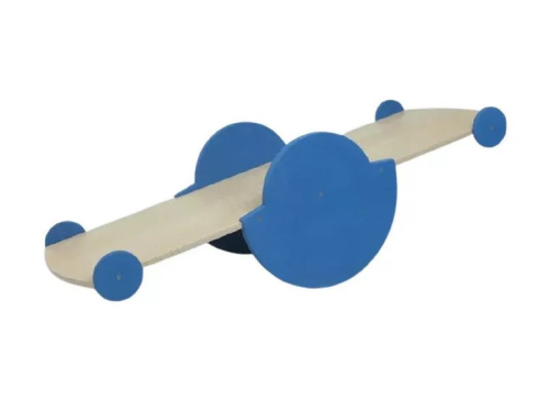 Балансир представлен 2-сторонней доской с 2-мя крупными центральными упорами в виде колес и 4-мя меньшими упорами (по 2 с каждой стороны). Качалка устойчива. Ребенок учится распределять вес тела таким образом, чтобы удержаться на платформе. Во время занятий тренируется вестибулярный аппарат.