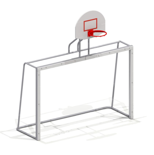 В верхней части расположено баскетбольное кольцо на фанерном щите с рамой.