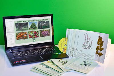 Образцы 22-х видов (засушенные части лекарственных растений: березы, боярышника, полыни, облепихи, мяты, чистотела) прикреплены на гербарные листы, сопровождаются аннотацией и рисунками. Дополнительные сведения содержатся в приложении. Пособие подходит для самостоятельного и коллективного изучения.