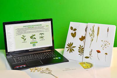 Засушенные части растений (брусники, укропа, черемухи, клена, крушины, клубники, крапивы, липы и др.) приклеены на гербарные листы. Для каждой темы предусмотрено по 3 экземпляра листов.
