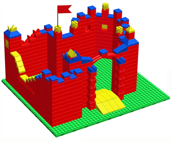 Собранный конструктор представлен в виде замка. Отлично подходит для игровых комнат в детских садах и ДОУ.