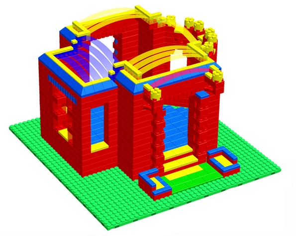 Собранный конструктор представлен в виде дворца. Отлично подходит для игровых комнат в детских садах и ДОУ, а так же для проведения досуга на переменах в начальных классах.