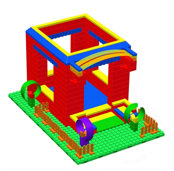 Собранный конструктор представлен в виде домика. Отлично подходит для игровых комнат в детских садах и ДОУ, а так же для проведения досуга на переменах в начальных классах.