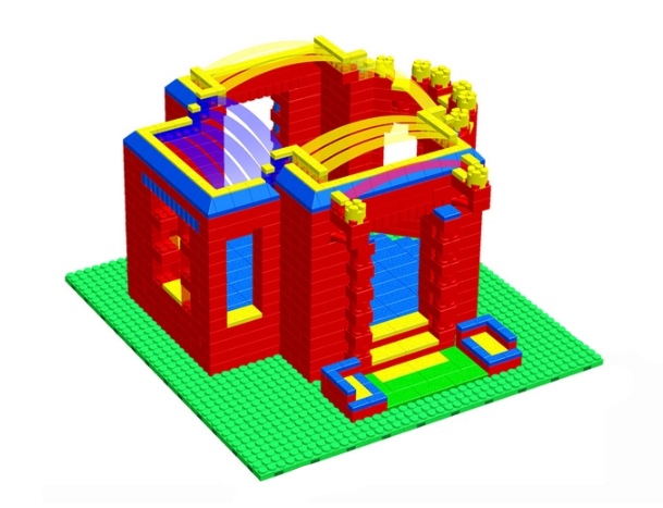 Собранный конструктор представлен в виде дворца. Отлично подойдет для игровых комнат в детских садах и ДОУ.