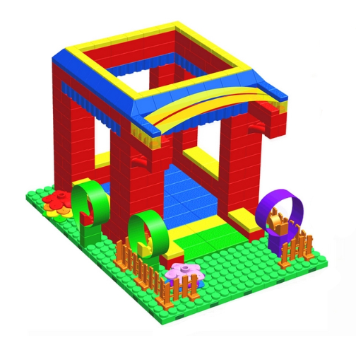 Собранный конструктор представлен в виде домика. Отлично подходит для игровых комнат в детских садах и ДОУ, а так же для проведения досуга на переменах в начальных классах.