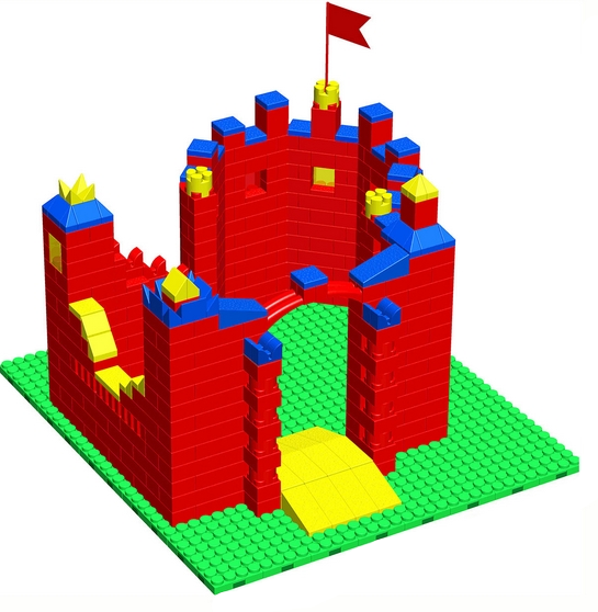Собранный конструктор представлен в виде замка. Отлично подходит для игровых комнат в детских садах и ДОУ.