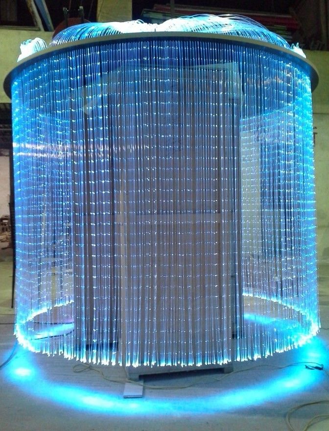 К основанию в форме гриба сверху прикрепляются светодиодные нити. Волокно защищается специальной оболочкой, поэтому не представляет опасности для ребенка.