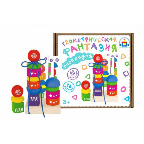 Набор для игры, направленной на развитие мелкой моторики, фантазии, внимания и пространственного мышления используется в детском саду. Включает в себя подставку со стержнем, на который при помощи специальных отверстий нанизываются геометрические фигуры разного цвета, разной формы, с орнаментом. Задания, записанные на карточках, можно усложнить при помощи входящего в комплект шнурка.