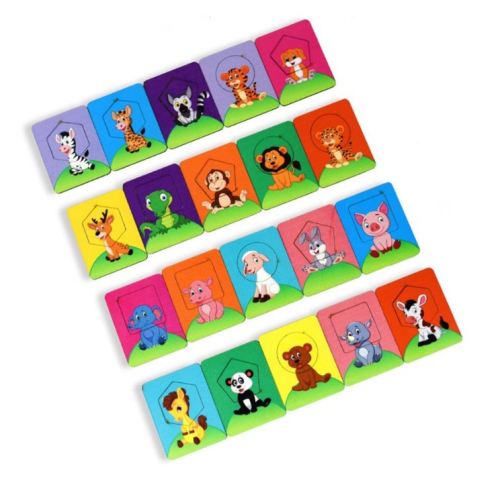 В центре каждой пластины есть отверстие, в которое необходимо вставить подходящую по форме и рисунку геометрическую фигуру: трапецию, квадрат, овал, пятиугольник и пр.