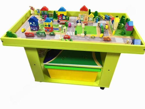 Детский мобильный стол «Ландшафт» — это конструктор «Город большой» и «Ферма» на игровом столе с бортиками.