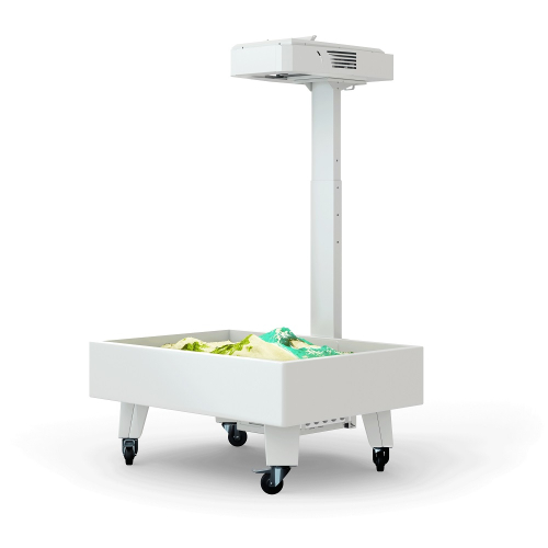 Мобильный резервуар с песком перемещается на колесах. В раздельном корпусе установлены компьютер, проектор и датчик глубины. Контрастность, яркость и цветопередача регулируются в зависимости от освещения. При помощи техники обычный песок превращается в имитацию рельефной земной поверхности.