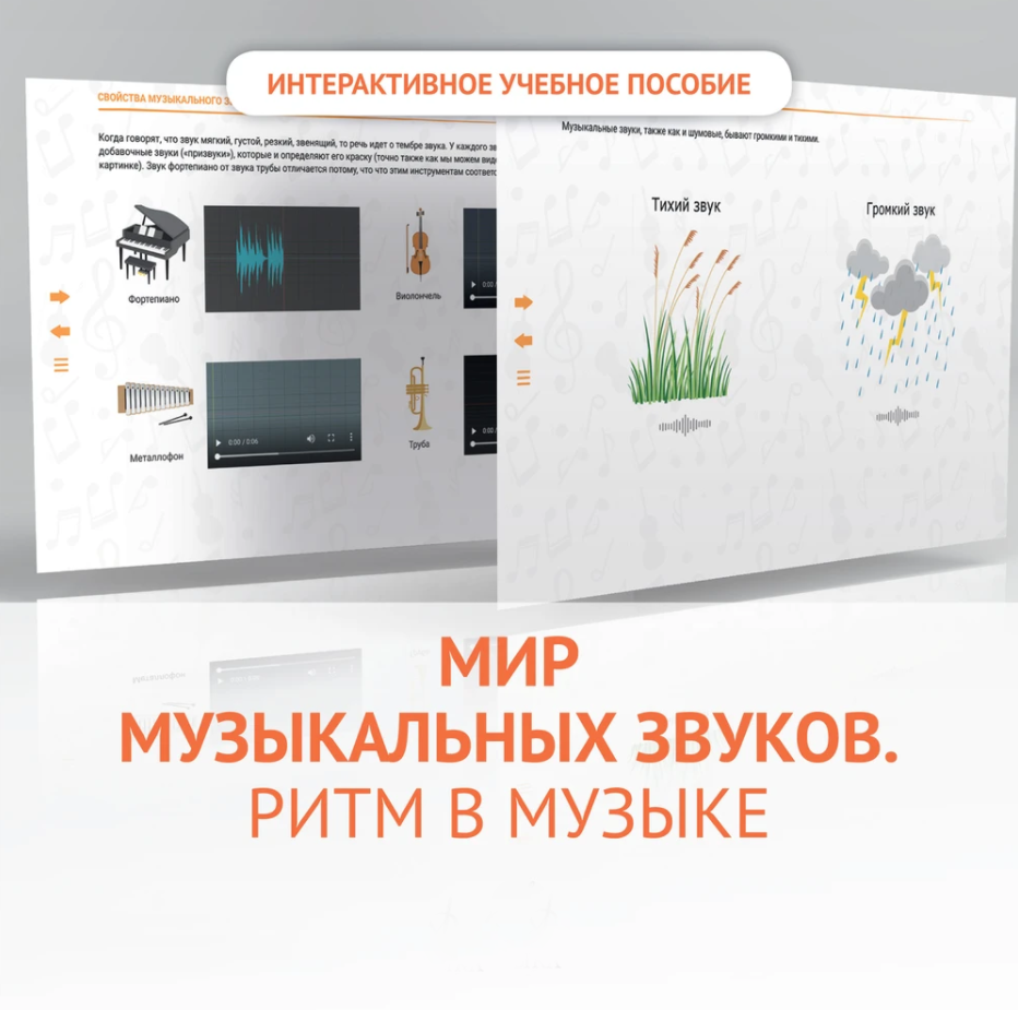 Электронный учебник для 1-4 классов содержит сведения о видах звуков, ритмическом рисунке, размерах (2/4, 3/4). Дети узнают о профессии композитора, роли творчества в окружающем мире.