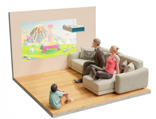 Сенсор считывает расстояние до каждой точки пола, и проецируемое изображение меняется в соответствии с действиями игроков и находящимися на поверхности предметами.