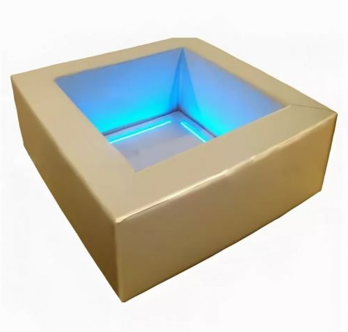 Сухой бассейн для игровых и сенсорных комнат заполняется шариками (приобретаются отдельно). Внутреннее пространство подсвечивается. Досуг в комплексе развивает тактильные ощущения, стимулируют органы зрения и слуха.