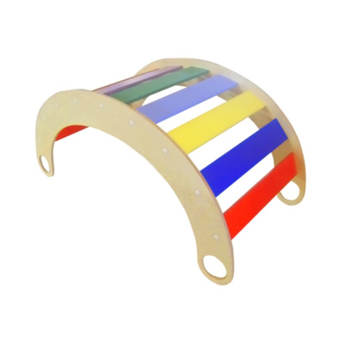 Мост с отшлифованными деревянными ступенями служит препятствием для перелезания. В перевернутом состоянии конструкция станет качалкой (опоры направлены вверх) или ограждением (опоры направлены вбок).