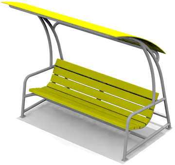 Оборудование для зоны отдыха состоит из каркаса, сиденья со спинкой на подвесе, и навеса. Крыша изготавливается из влагостойкой фанеры. Подвес и каркас металлические из трубы круглого сечения, d 42 мм.