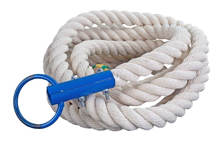 Гимнастический канат без узлов используется в школе во время обучения лазанию. Занятия полезны для развития выносливости и физической подготовки.