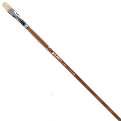 Кисть художественная профессиональная BRAUBERG ART CLASSIC, щетина, плоская, № 10, длинная ручка, 200717