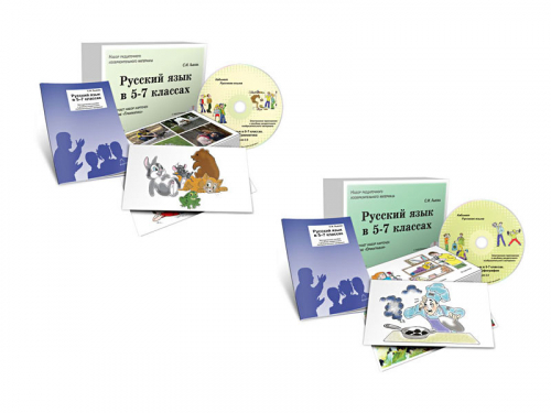 | Комплектация | 2 компакт-диска,, по 5 одинаковых раздаточных наборов (16 карточек формата А5) к каждой из 2-х тем орфография, грамматика,, 2 методических руководства |