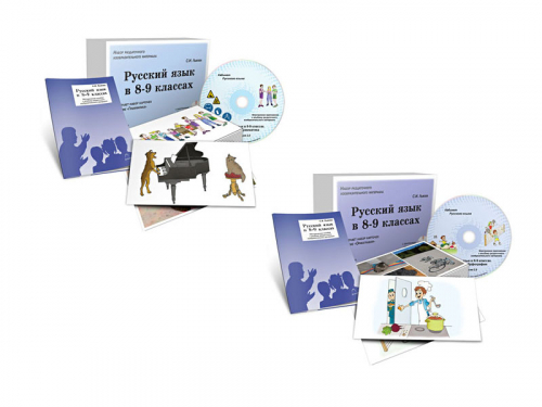 | Комплектация | 2 компакт-диска,, по 5 одинаковых раздаточных наборов (16 карточек формата А5) к каждой из 2-х тем грамматика, орфография, , 2 методических руководства |