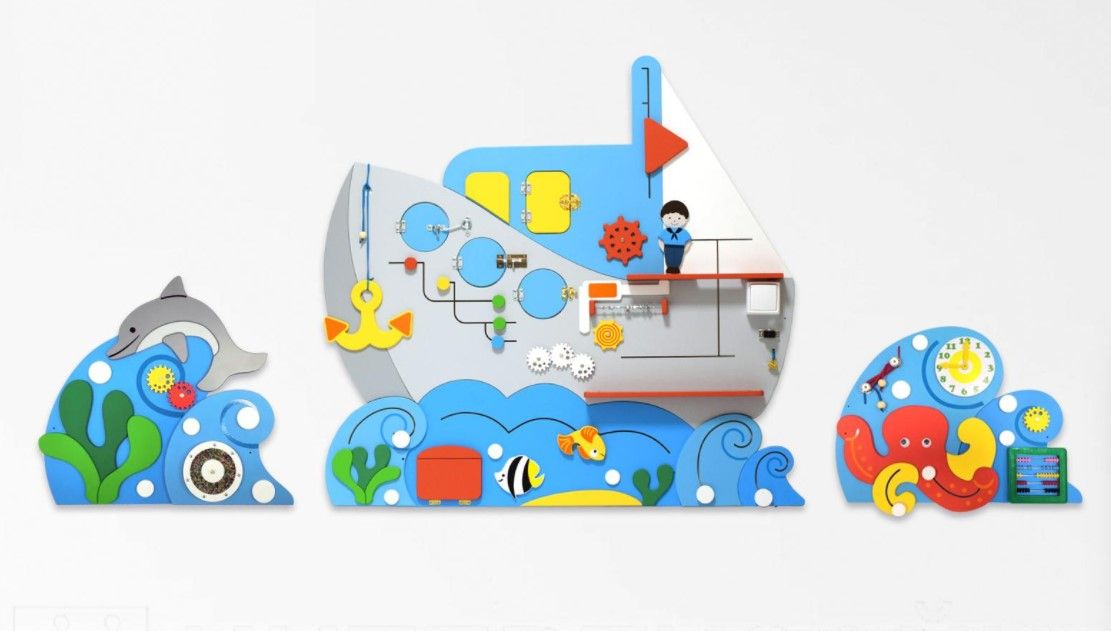 | В комплекте 3 бизиборда | Осьминог, 480х380 мм,, Корабль, 1000х930 мм,, Дельфин, 500х480 мм |