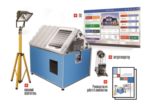 Комплекс поставляется в собранном виде. Он представляет собой настольную модель дома с жилым модулем и двумя технологическими помещениями. Система позволяет поддерживать температуру внутри модуля в заданных пределах, накапливать тепло и электроэнергию, анализировать теплопотери и энергопотребление, моделировать работу системы охраны и контроля доступа.