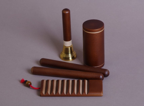 | В комплекте | Погремушка (цилиндр) — 1 шт., Палочки музыкальные — 1 шт., Колотушка-рубель — 1 шт., Колокольчик — 1 шт., Пьесы в разных темпах (доступны для скачивания) — 1 шт., Прозрачная упаковка — 1 шт |