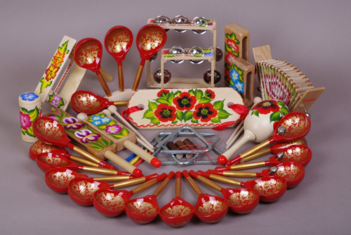 Народные музыкальные инструменты с художественной росписью предназначены для дошкольников и детей младшего школьного возраста.