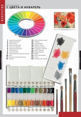 Комплект плакатов «Цветоведение» представлен на 18-ти листах. Может применяться как демонстрационное пособие в школах, художественных студиях и кружках.
