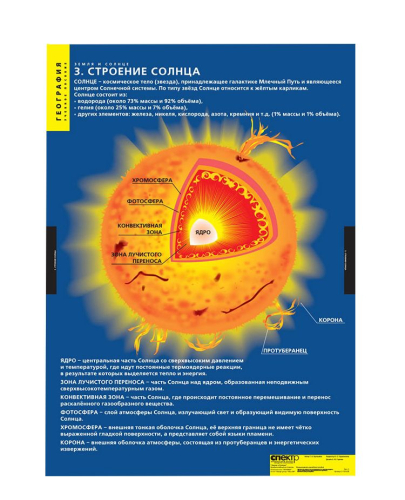 | В комплект входит 4 полноцветных плаката | Солнечная система;, Солнце, Земля, Луна;, Строение Солнца;, Земля под воздействием солнечного излучения |