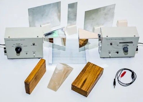 Набор для уроков физики применяется в лаборатории. Назначение: демонстрация свойств электромагнитных волн (дифракция, интерференция, отражение, преломление).