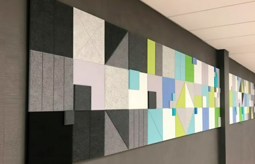 Абстрактная композиция служит декором, теплоизоляцией, защитой от шума, основой для крепления информации. Панели прямоугольной и треугольной форм составляются в рисунок. Набор используется полностью или частично. В случае повреждения каждый элемент демонтируется отдельно от остальных.