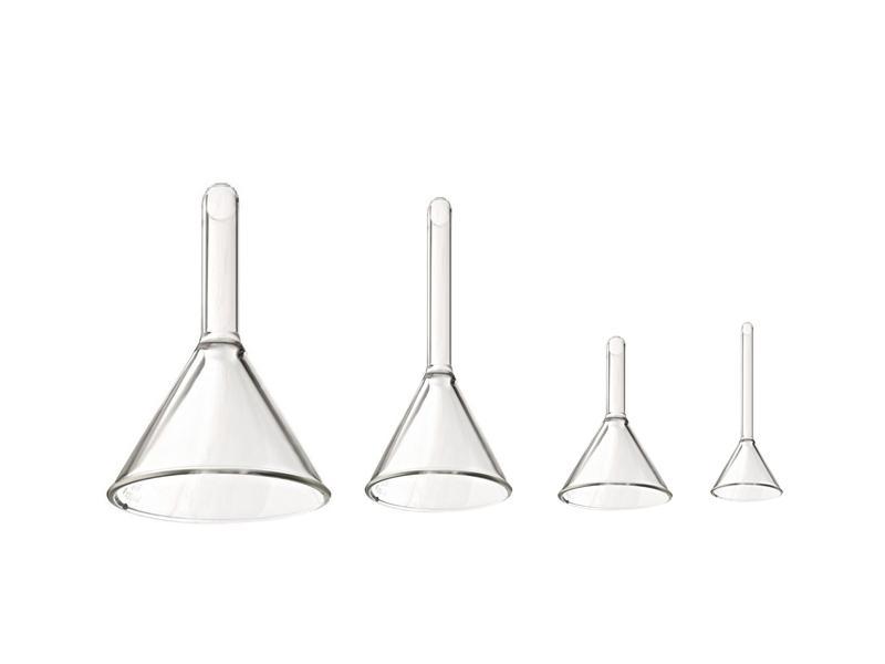 Прозрачные воронки для лабораторных работ по химии помогают переливать и пересыпать вещества во время подготовки или демонстрации опытов.
