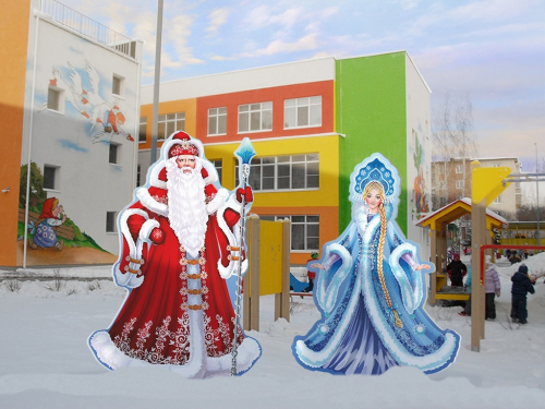 | В комплекте | фигура Деда Мороза, размеры (ШхВ) — 1220х1800 мм;, фигура Снегурочки, размеры (ШхВ) — 1200х1630 мм;, металлические стойки и крепеж |