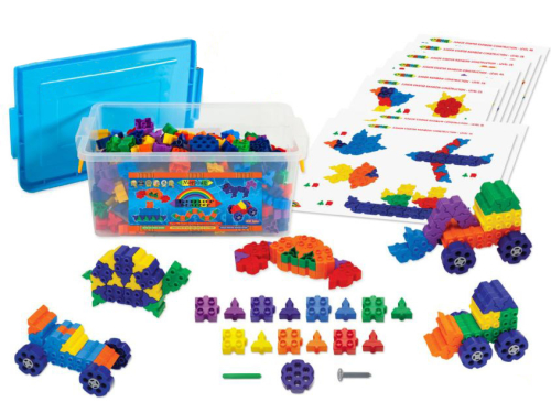 Комплект состоит из 600 элементов различных форм и размеров, среди которых присутствуют соединители и оси, позволяющие конструировать разнообразные объекты — от плоских двухмерных до сложных объемных структур. Для удобства прилагаются иллюстрированные пошаговые руководства пяти степеней сложности, представленные в удобном формате А3.