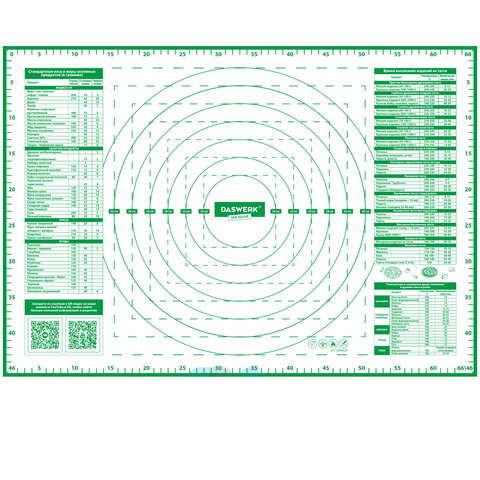 В первую очередь коврик силиконовый предназначен для замешивания и раскатки теста, но готовить на нём можно любые блюда. Изготовленный из безопасного пищевого силикона коврик размером 46х66 см не скользит по столу, а тесто любой консистенции к коврику не прилипает. Для удобства на силиконовый коврик для теста нанесена вспомогательная разметка и полезная кулинарная информация. Также набор включает пластиковый нож для теста (24 см).